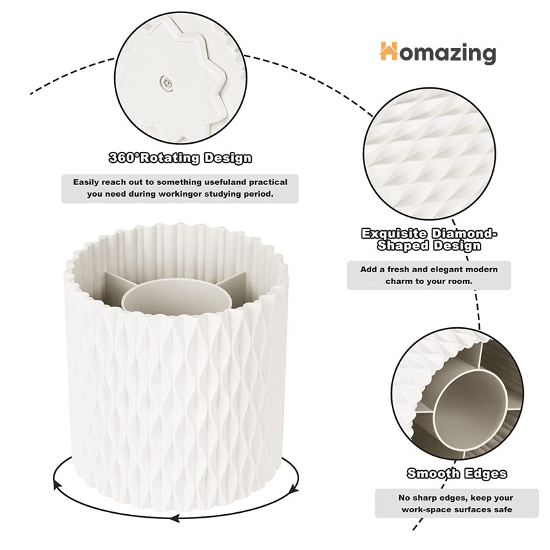 - Rotating storage tube, the unique design of 5 independent slots, suitable for pencils, pens, ruler, scissors, makeup brushes, etc.