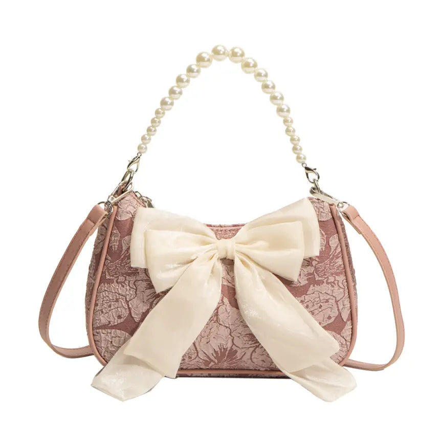 Bow Shoulder Canvas Bag with Pearl Strap Design
